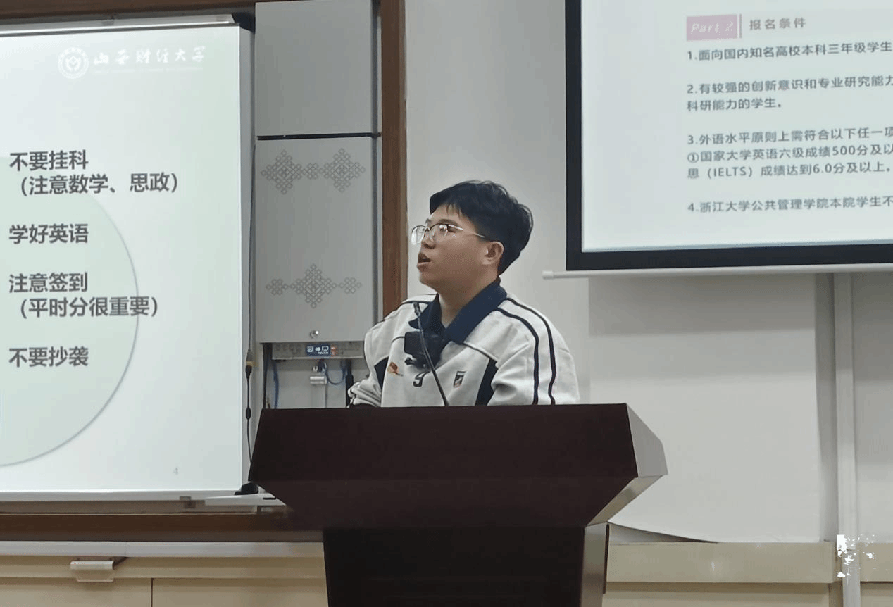 为帮助同学们深入了解学科竞赛,掌握参赛技巧,我院于11月12日、19日分别在迎泽校区和坞城校区举办了“学长领航计划——学科竞赛不迷路”活动。本次活动邀请了四位在学科竞赛中表现优异的学长担任主讲人,他们分别是隆菁扬、郭祉妤、冯权和杨嘉琪。四位同学凭借丰富的参赛经历和出色的竞赛成绩,为学弟学妹们带来了一场干货满满的经验分享会。