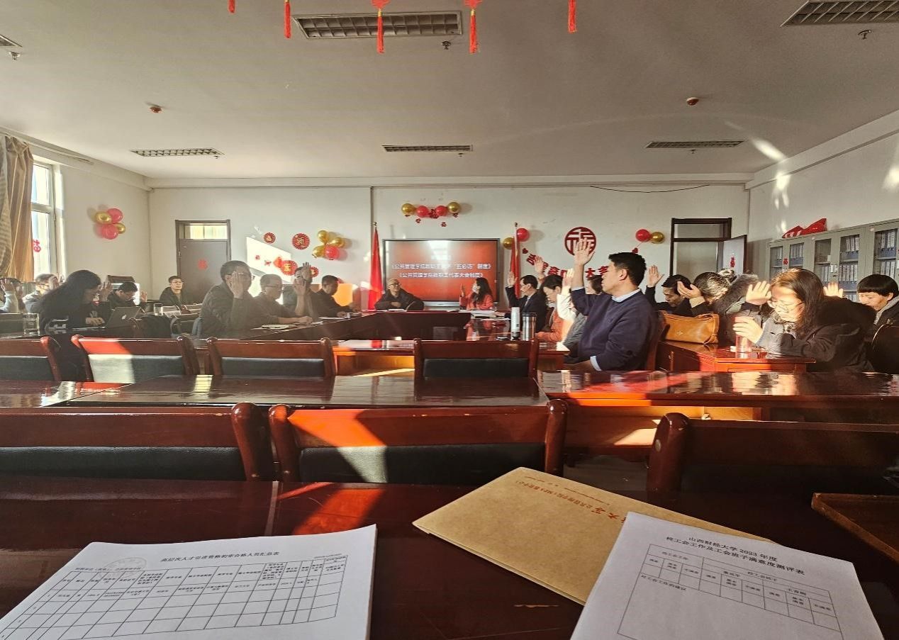 1月12日下午,我院会议室隆重热烈,全体教师齐聚一堂,共商学院发展大计。会议由学院副院长段宇波主持。大会听取讨论了学院工作报告和工会工作报告,研究制定(修订)了学院教职工大会制度和“五必访”制度,审议通过了学院教职工大会专门工作机构。
