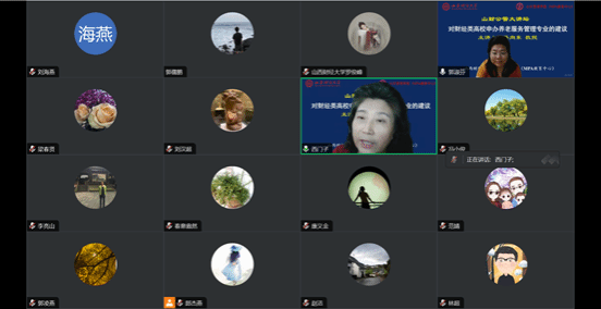 2023年9月12日,吉林财经大学学院院长蔡向东教授,以“财经类高校申办养老服务管理专业的建议”为题做了报告,研讨会由我院院长郭淑芬教授主持,学院副院长冯小俊和刘海燕、劳动与社会保障系全体教师、学院教指委委员参加了研讨会。