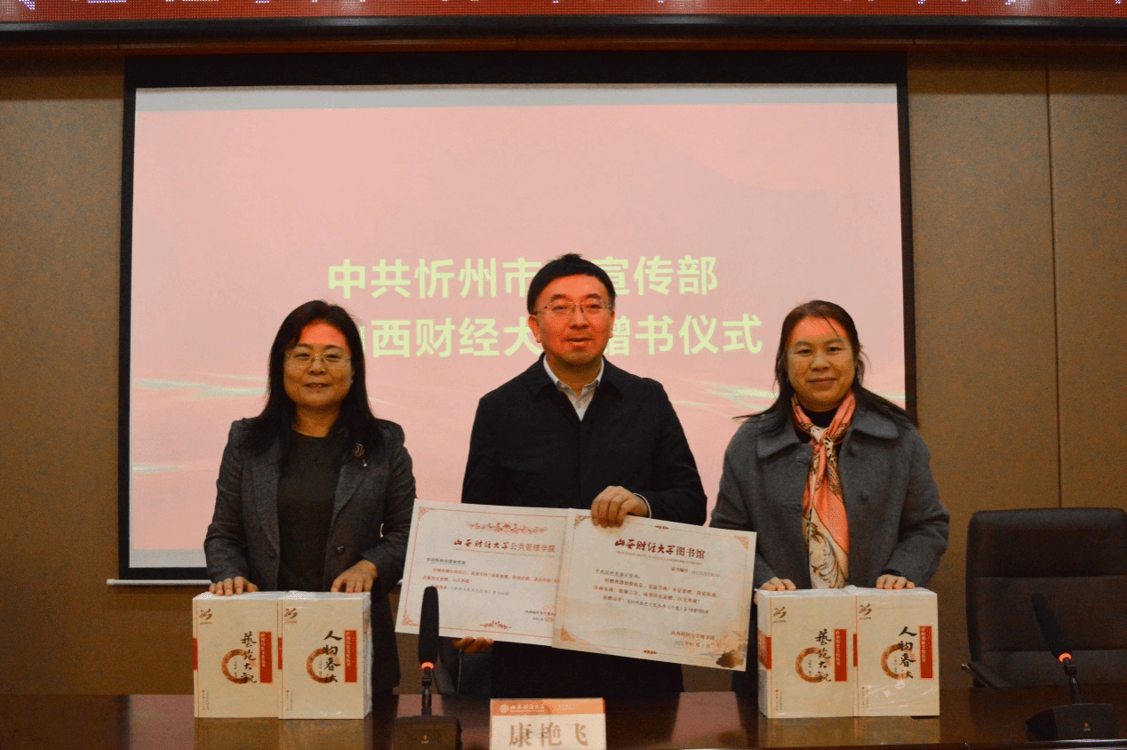 今年以来,学院按照学校的校地合作战略部署,主动深化务实合作,在学院承担忻州市宣传思想文化系统干部培训期间举行本次赠书活动,是双方深化合作的重要环节。本次所赠书籍为我校研究忻州独特的地域历史文化提供了重要史料,为挖掘其历史价值,讲好忻州故事提供了重要素材。