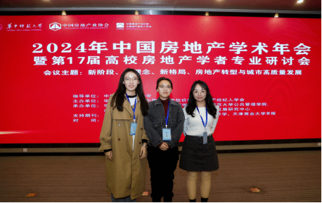2024年中国房地产学术年会暨第17届高校房地产学者专业研讨会于2024年11月2日在武汉成功召开。会议由华中师范大学、中国房地产估价师与房地产经纪人学会联合主办,华中师范大学经济与工商管理学院、学院、湖北省住房改革与发展研究会、湖北房地产发展研究中心承办,会议主题为“新阶段、新理念、新格局:房地产转型与城市高质量发展”。我院硕士研究生周江璐、刘煜彤、李佳敏参会。