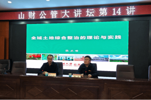 2024年11月1日下午在博学楼二层会议室举办山财公管大讲坛(第14讲)学术活动。此次活动由我院主办,特别邀请中国人民大学学院土地管理系主任张正峰教授,为土地资源管理专业师生做以“全域土地综合整治的理论与实践”主题的学术报告。报告会由我院冯小俊副院长、土地资源管理系主任林超副教授主持。