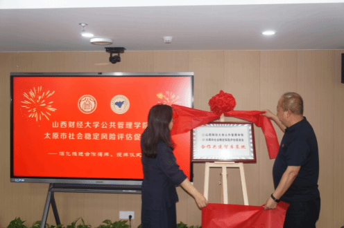 随后,我院院长郭淑芬与太原市委政法委分管领导徐剑平共同为云顶国际8588yd与太原市社会稳定风险评估促进会校企合作共建智库基地挂牌。